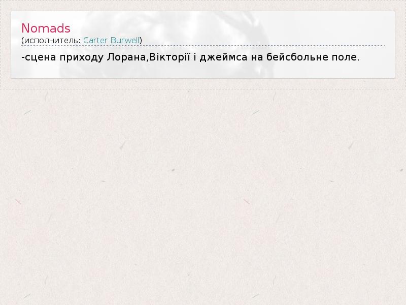 Это интересно:Картер Бёруэлл (англ. Carter Burwell; род. 18 ноября 1955, Нью-Йорк, штат Нью-Йорк, США) — американский кинокомпозитор.В детстве обучался игре на фортепьяно. Окончил в 1977 году Гарвардский университет, где обучался анимации и электронной музыке. После выпуска работал ассистентом в университетской студии электронной музыки. В 1979 создал анимационный фильм "Help, I’m Being Crushed to... продолжение