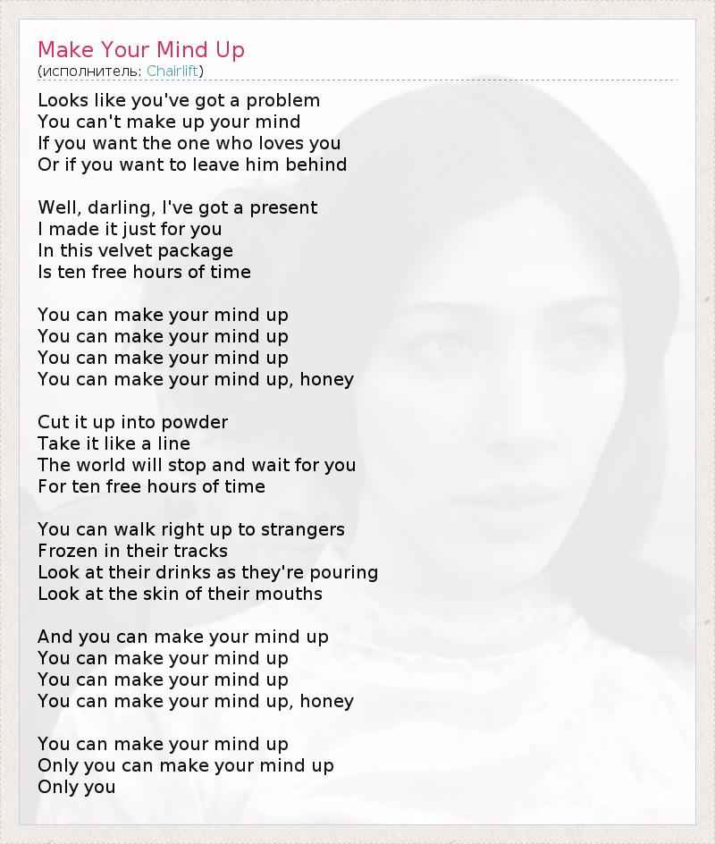 А как ты думаешь, о чем песня "Make Your Mind Up" ?