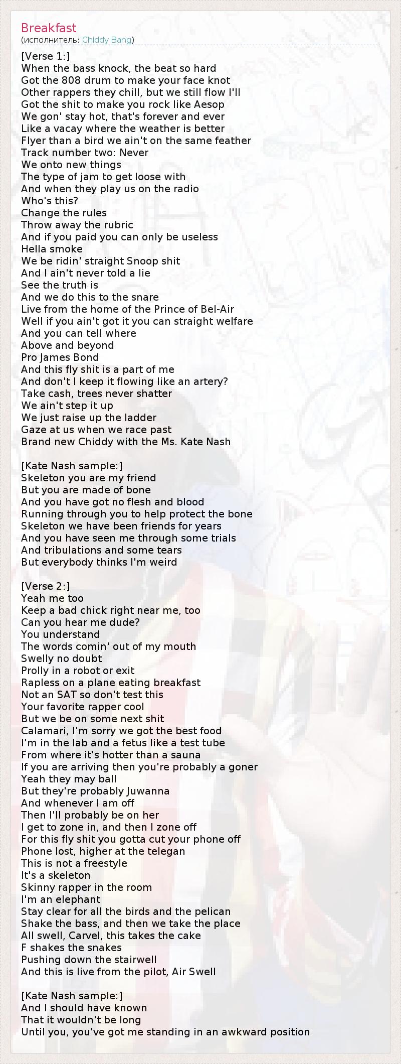 Это интересно:Chiddy Bang группа из Филадельфии, СШАГруппа состоит из Chidera "Chiddy" Anamege a.k.a. Proto и Noah Beresin также известный как Xaphoon Jones и Dan Summers. В ноябре 2009 года группа дебютировала с их первым бесплатным микстейпом "The Swelly Express". Микстейп был хорошо принят в сети, и в январе 2010 года Chiddy Bang заключили контракт с лейблом EMI.Дискография:EPs:2010 - The Opposite Of Adults EP2010 - The Preview... продолжение