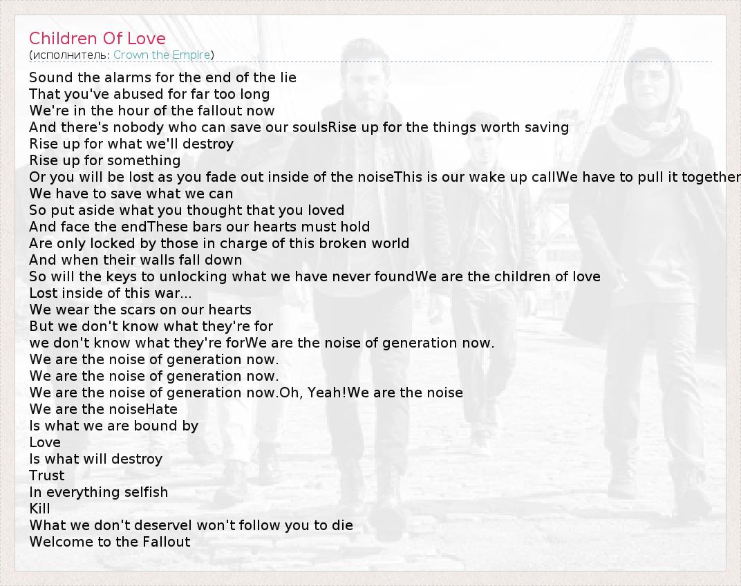 А как ты думаешь, о чем песня "Children Of Love" ?