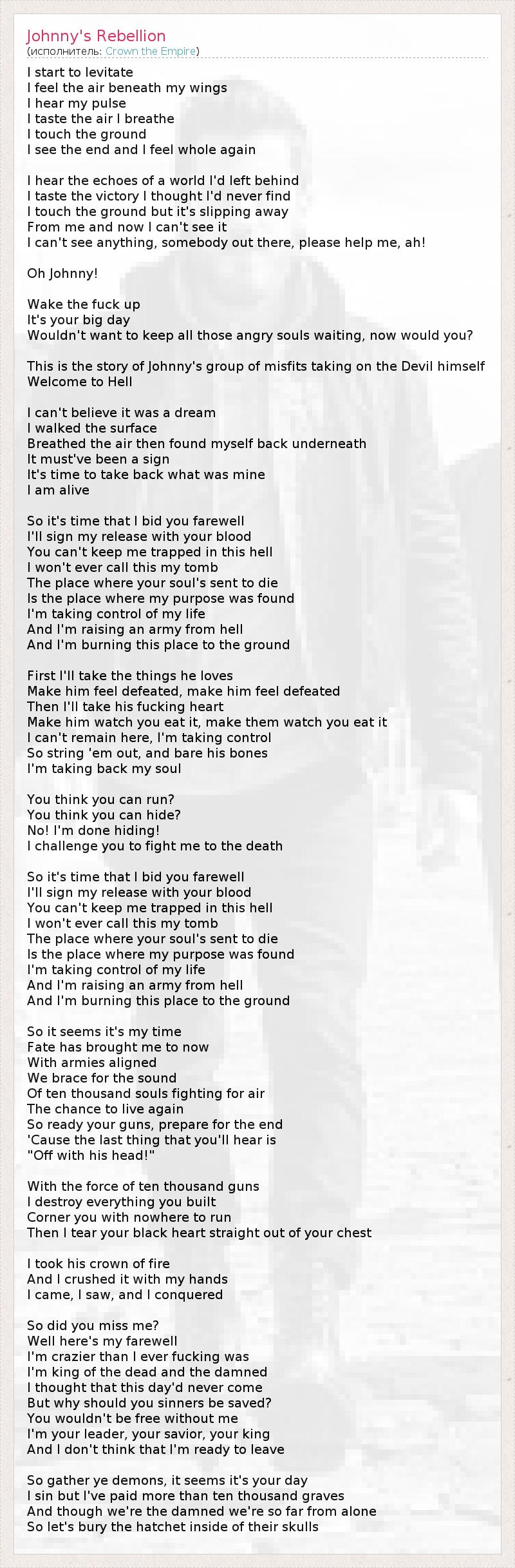 А как ты думаешь, о чем песня "Johnny's Rebellion" ?