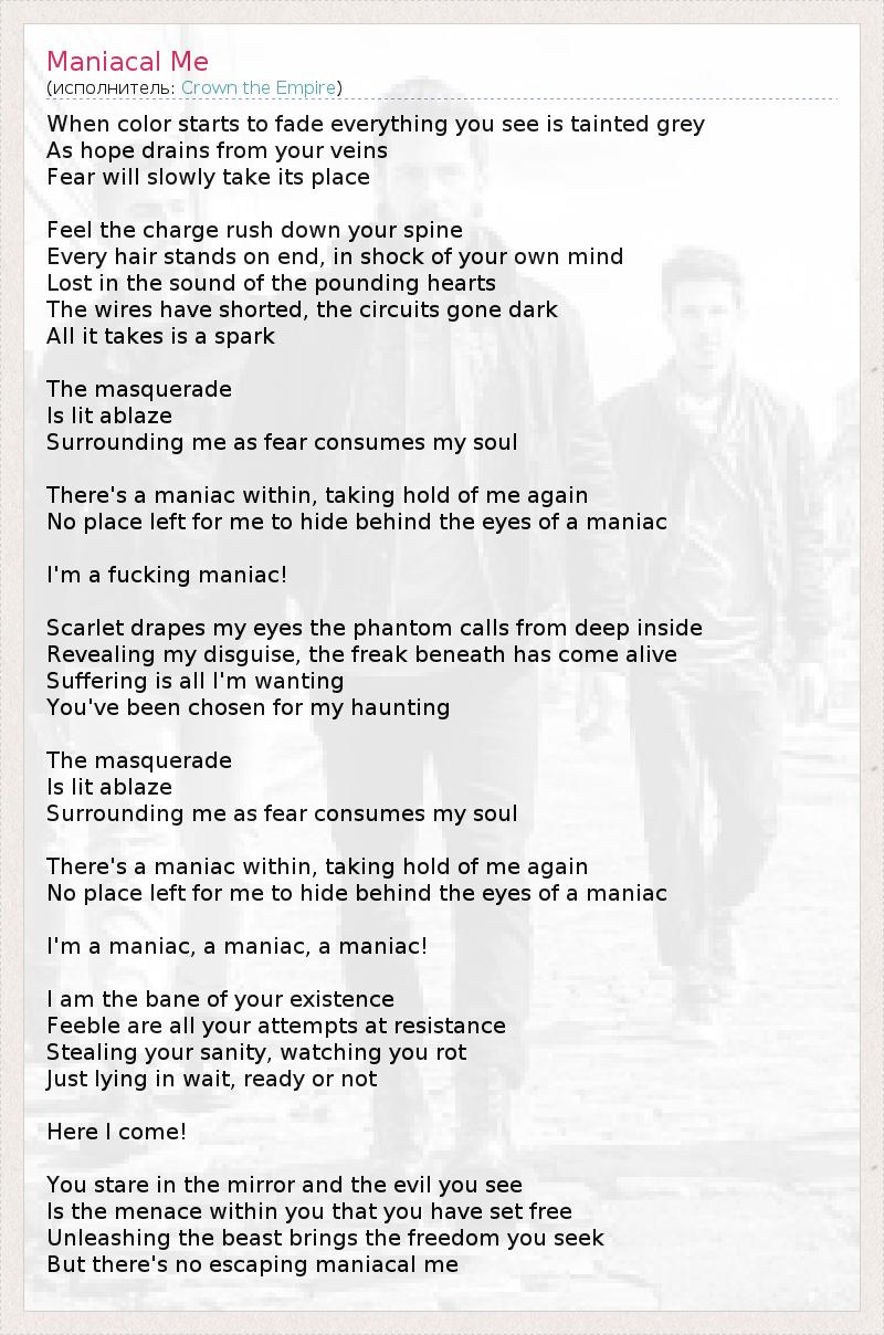 А как ты думаешь, о чем песня "Maniacal Me" ?