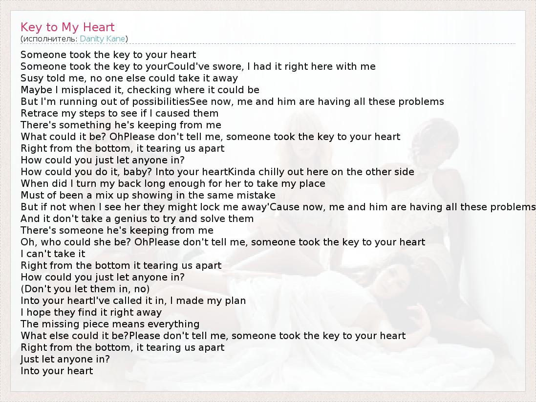 А как ты думаешь, о чем песня "Key to My Heart" ?