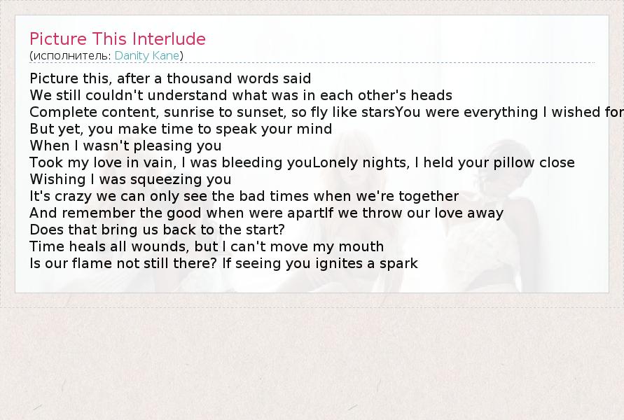 А как ты думаешь, о чем песня "Picture This Interlude" ?