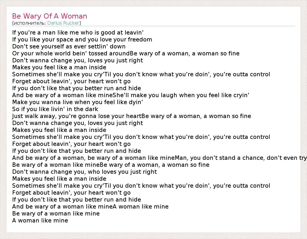 А как ты думаешь, о чем песня "Be Wary Of A Woman" ?