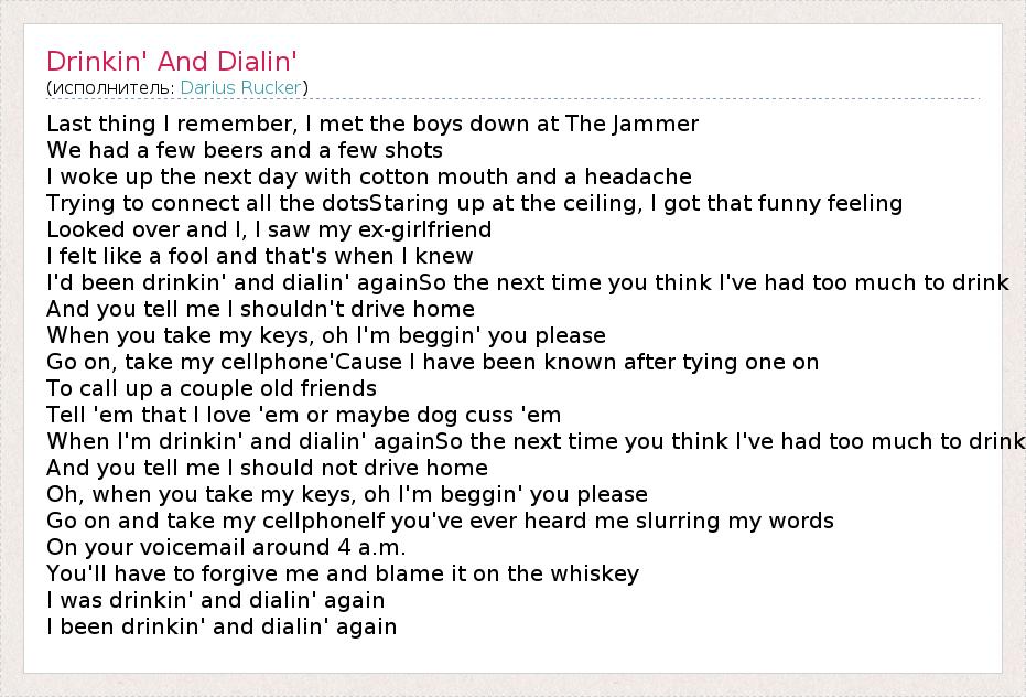 А как ты думаешь, о чем песня "Drinkin' And Dialin'" ?