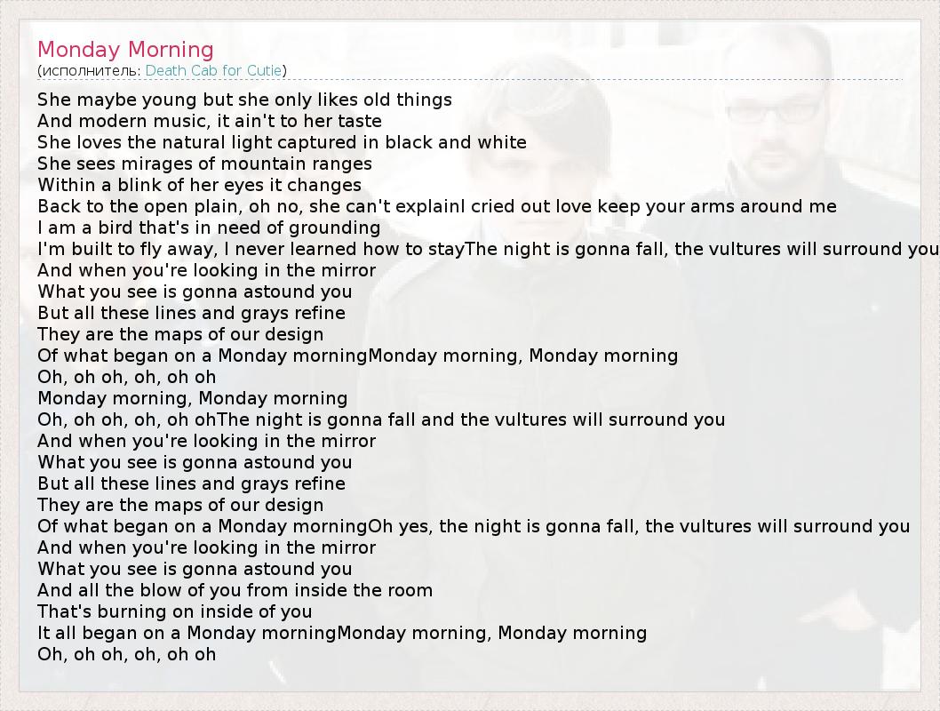 А как ты думаешь, о чем песня "Monday Morning" ?