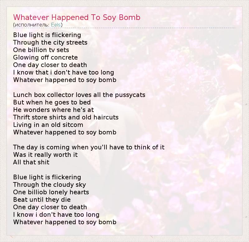 А как ты думаешь, о чем песня "Whatever Happened To Soy Bomb" ?