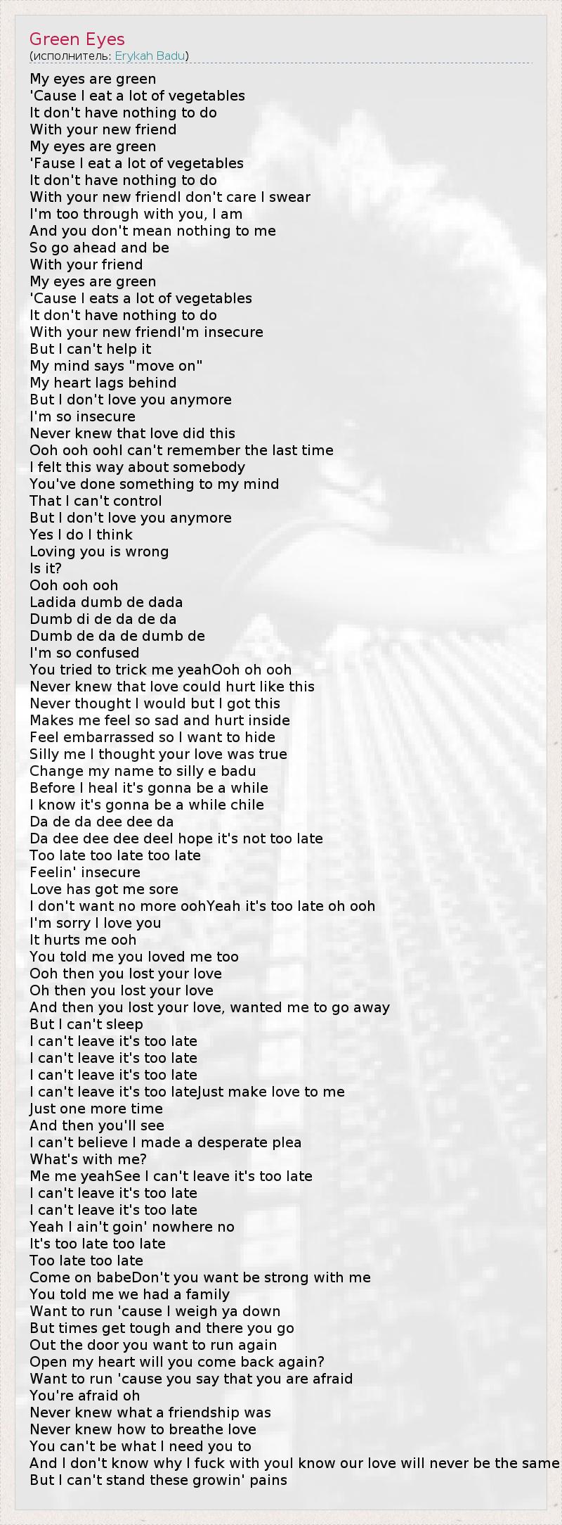 А как ты думаешь, о чем песня "Green Eyes" ?