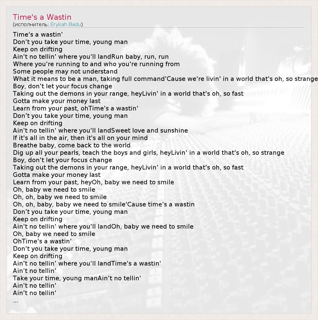 А как ты думаешь, о чем песня "Time's a Wastin" ?