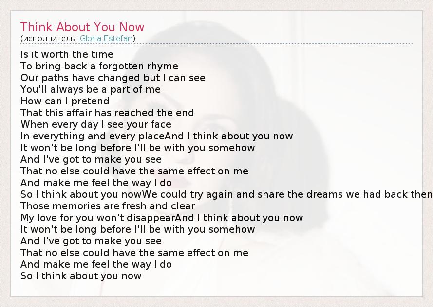А как ты думаешь, о чем песня "Think About You Now" ?