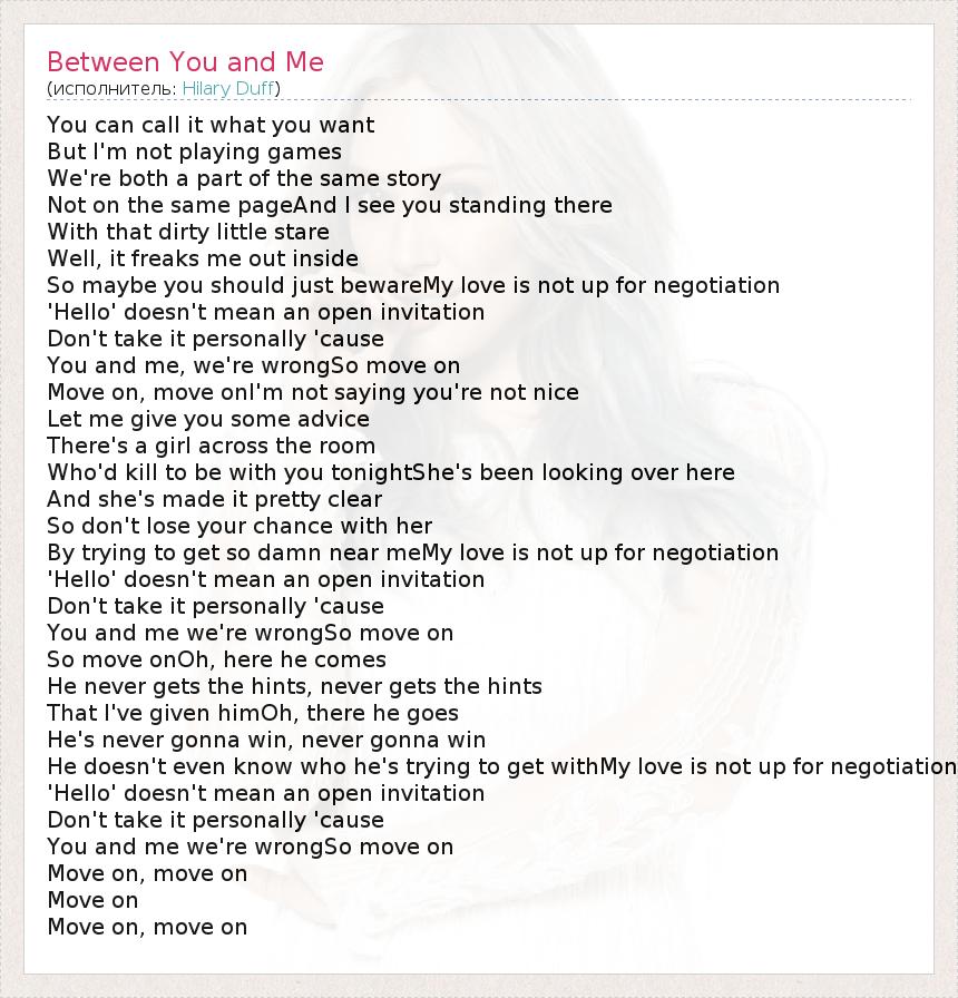 А как ты думаешь, о чем песня "Between You and Me" ?