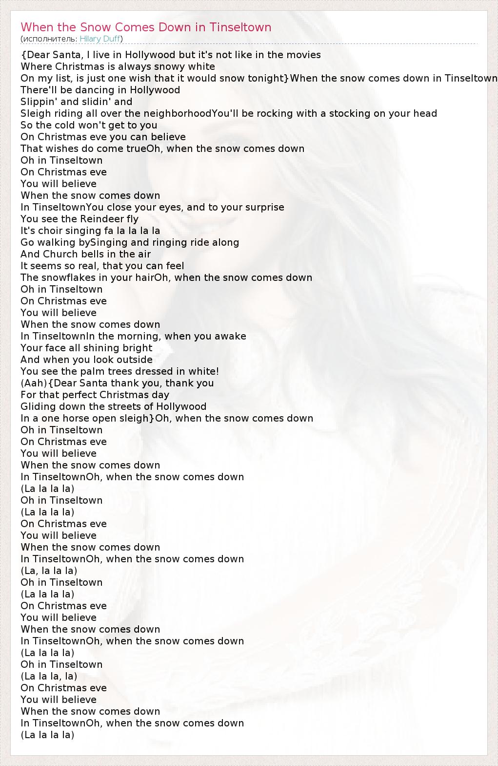 А как ты думаешь, о чем песня "When the Snow Comes Down in Tinseltown" ?