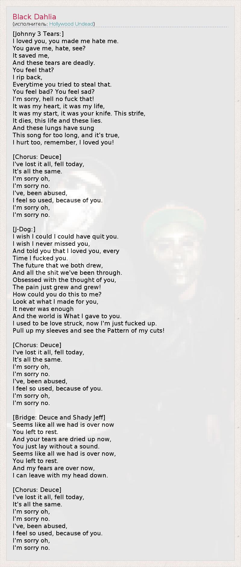 А как ты думаешь, о чем песня "Black Dahlia" ?