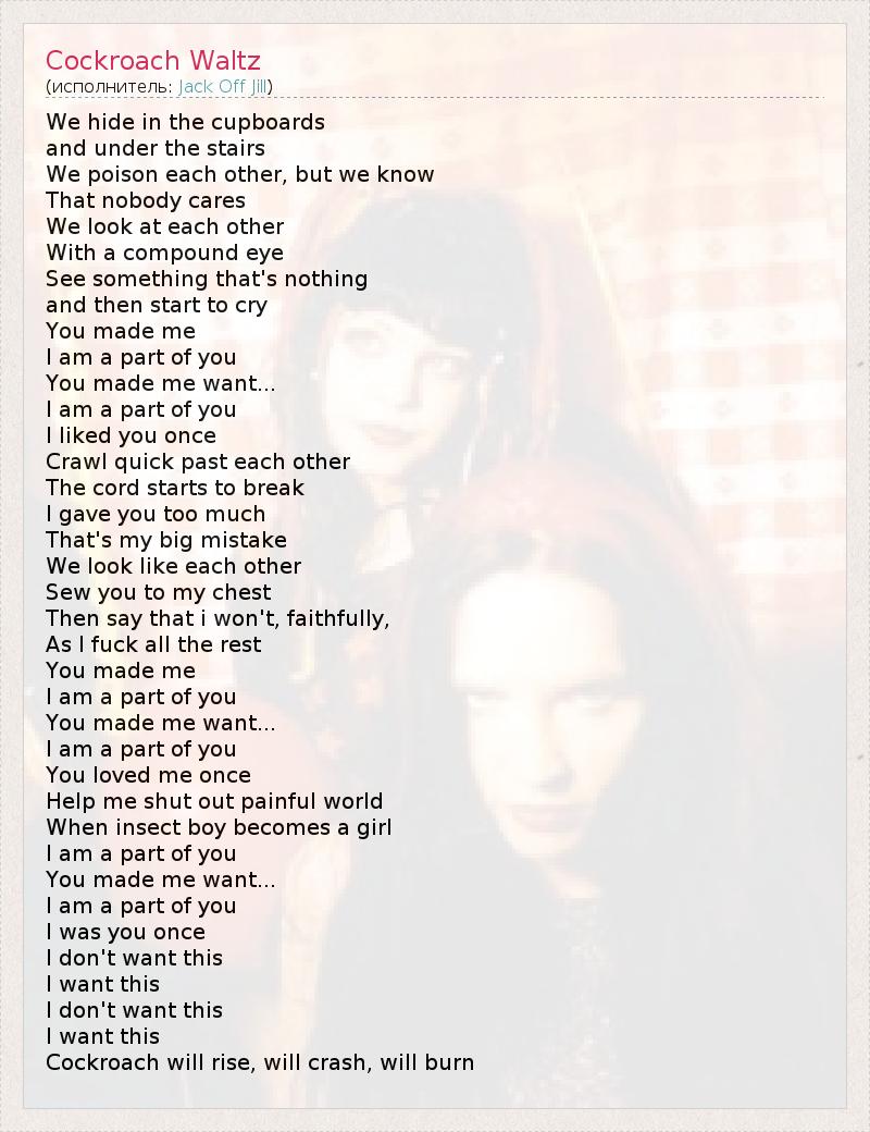 А как ты думаешь, о чем песня "Cockroach Waltz" ?