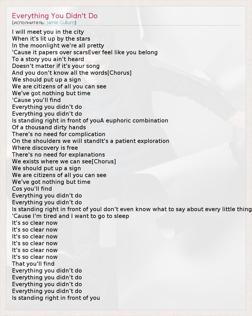 А как ты думаешь, о чем песня "Everything You Didn't Do" ?