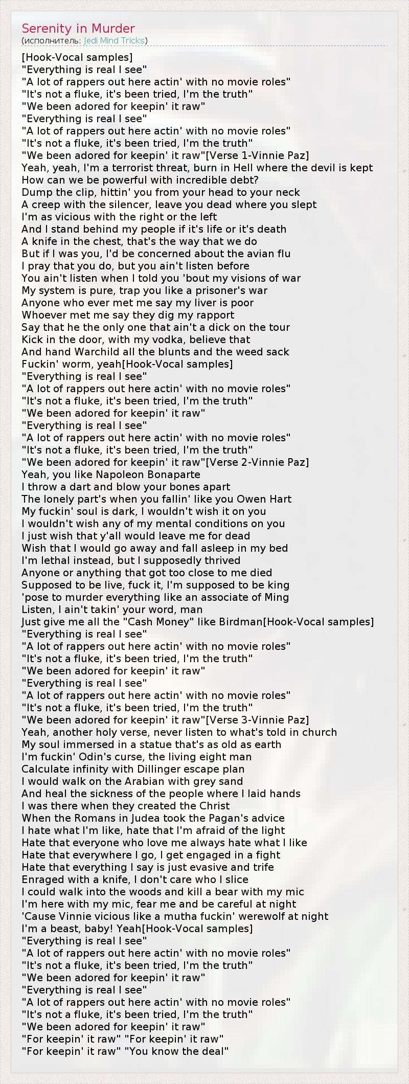А как ты думаешь, о чем песня "Serenity in Murder" ?