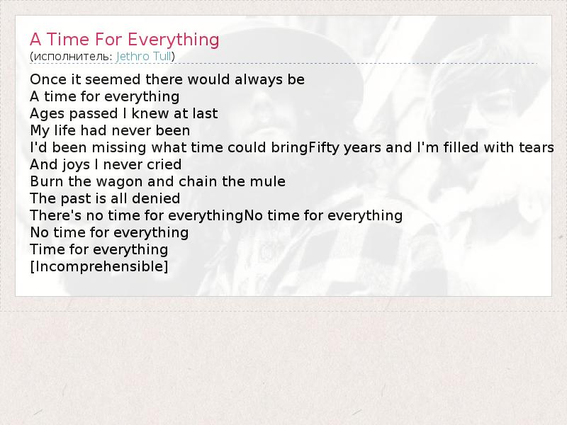 А как ты думаешь, о чем песня "A Time For Everything" ?