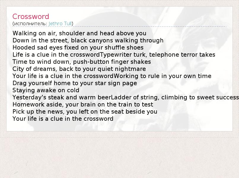 Это интересно:Английская группа "Jethro Tull" (это имя ученого-аграрника, жившего около 200 лет назад), образовалась в Лютоне (Великобритания) в 1967 году. Исходный состав состоял из Иана Андерсона (вокал, флейта, р. 10 августа 1947), Мика Абрахамса (гитара, вокал, р. 7 апреля 1943), Гленна Корника (бас-гитара, р. 24 апреля 1947) и Клайва Банкера (ударные, р. 12 декабря 1946). Иан Андерсон впервые выступил в блэкпулской группе... продолжение