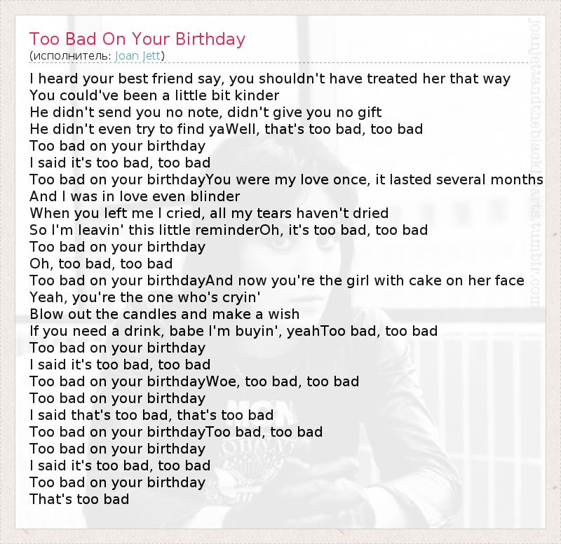А как ты думаешь, о чем песня "Too Bad On Your Birthday" ?