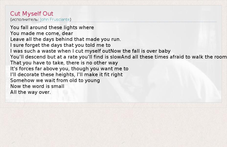 А как ты думаешь, о чем песня "Cut Myself Out" ?