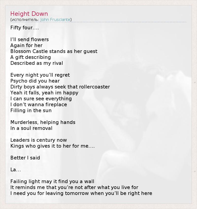 Это интересно:Джон Фрушанте младший родился 5 марта 1970 года в Нью-Йорке. Он рос в хорошей семье, у него были любящие родители, два брата и две сестры. В 13 лет дедушка дарит Джону гитару и отдает его на курсы классический гитары. С этих пор и начинается увлечение Джона музыкой. В 16 лет Джон уходит из дома и снимает квартиру. Он проводил дни, играя на гитаре под записи Джимми Хендрикса, Френка Заппы, Эрика... продолжение