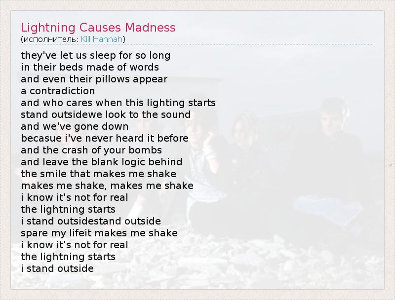 А как ты думаешь, о чем песня "Lightning Causes Madness" ?