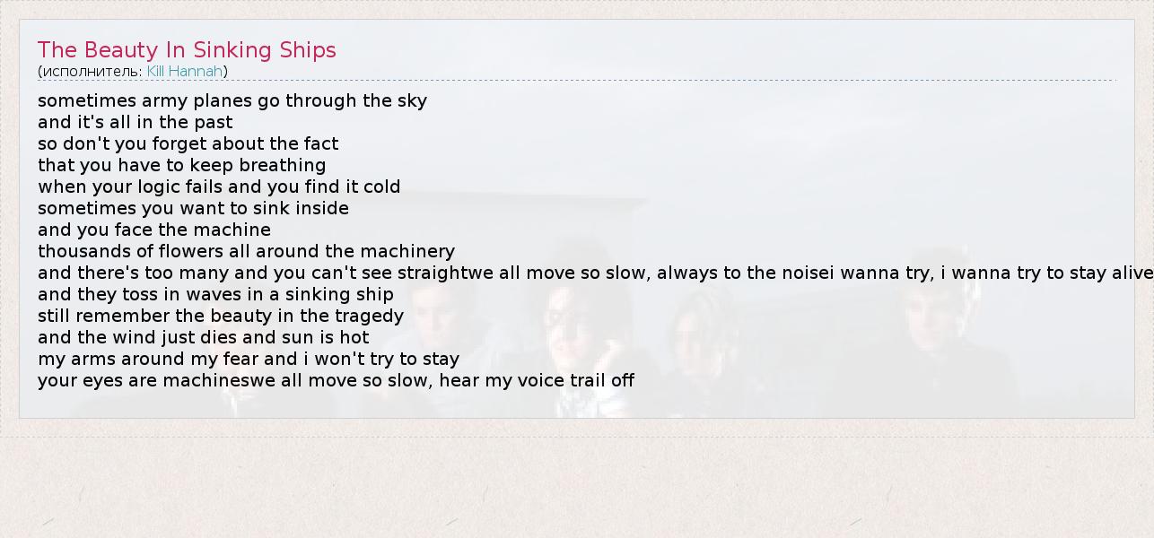 А как ты думаешь, о чем песня "The Beauty In Sinking Ships" ?