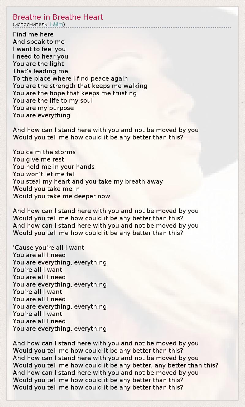 А как ты думаешь, о чем песня "Breathe in Breathe Heart" ?