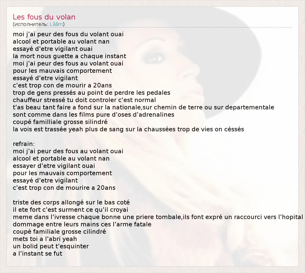 А как ты думаешь, о чем песня "Les fous du volan" ?