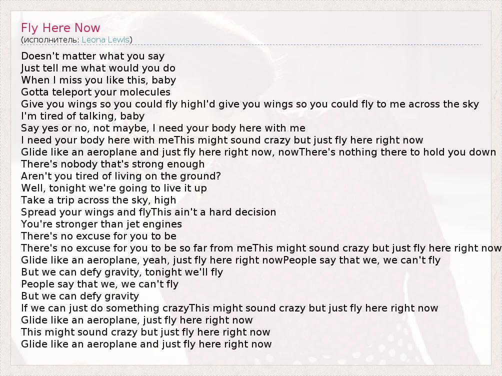 А как ты думаешь, о чем песня "Fly Here Now" ?