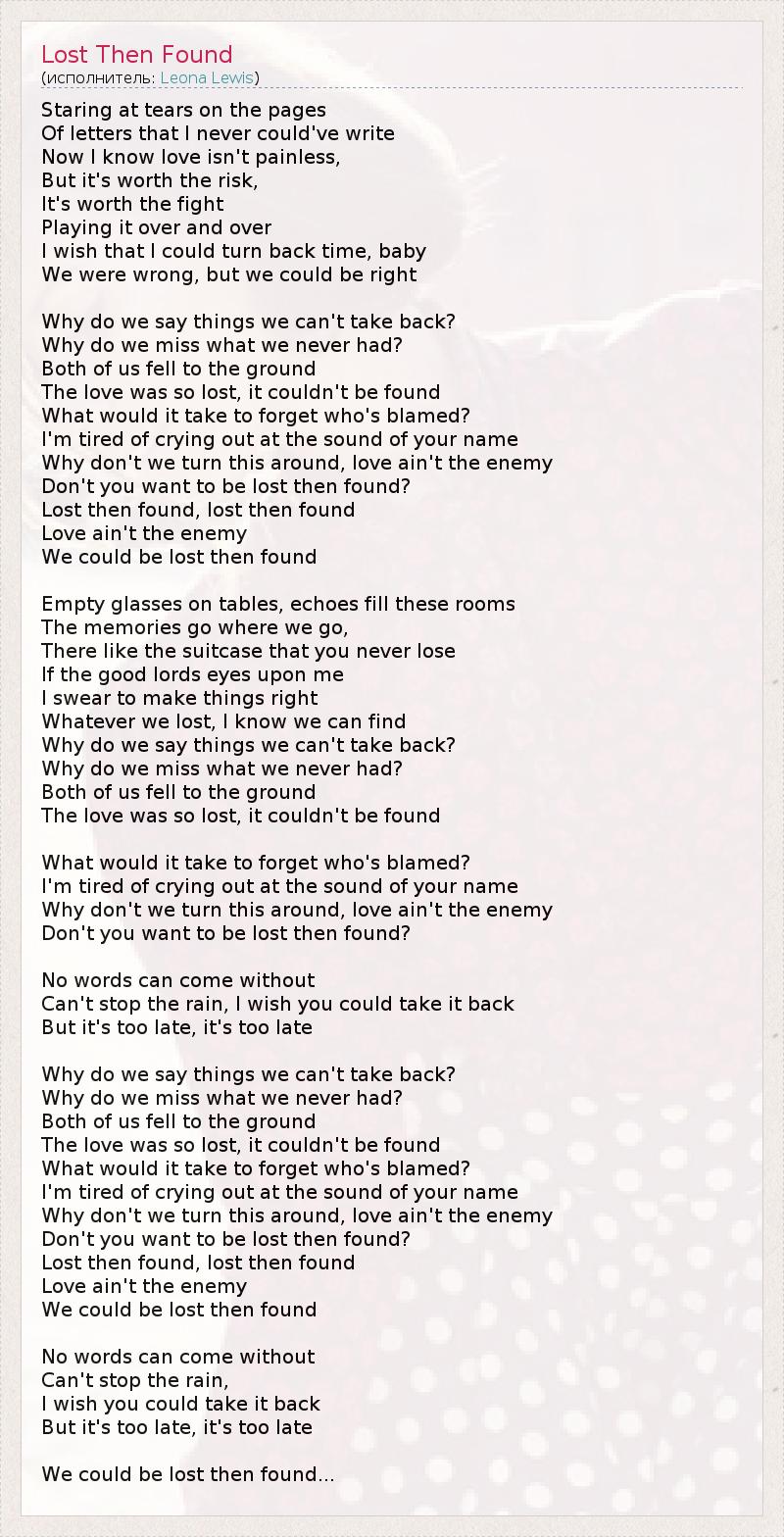 А как ты думаешь, о чем песня "Lost Then Found" ?