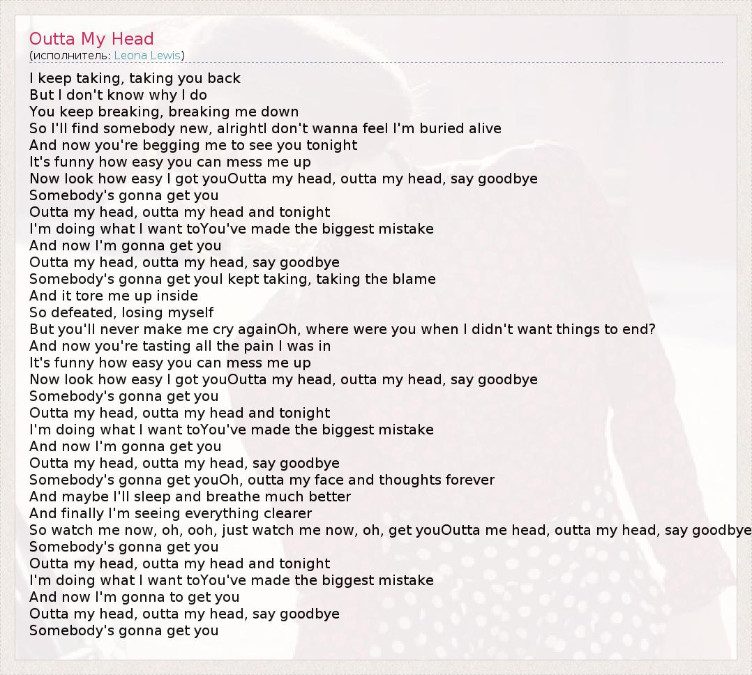 А как ты думаешь, о чем песня "Outta My Head" ?