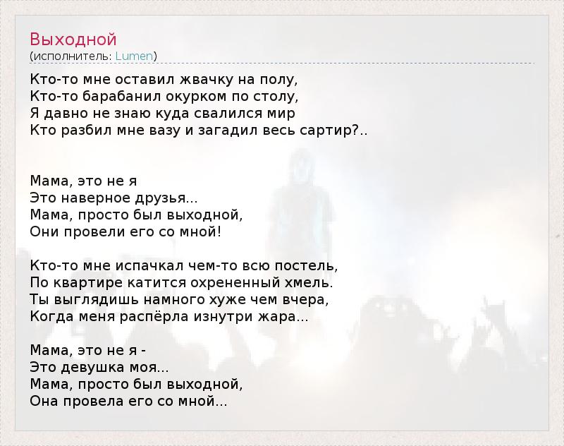 А как ты думаешь, о чем песня "Выходной" ?