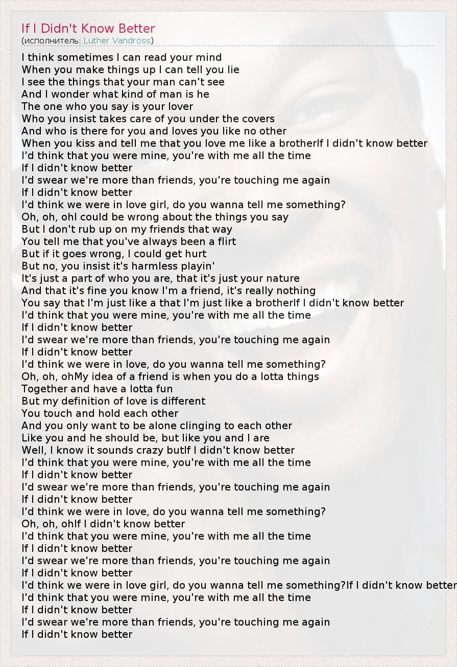 А как ты думаешь, о чем песня "If I Didn't Know Better" ?