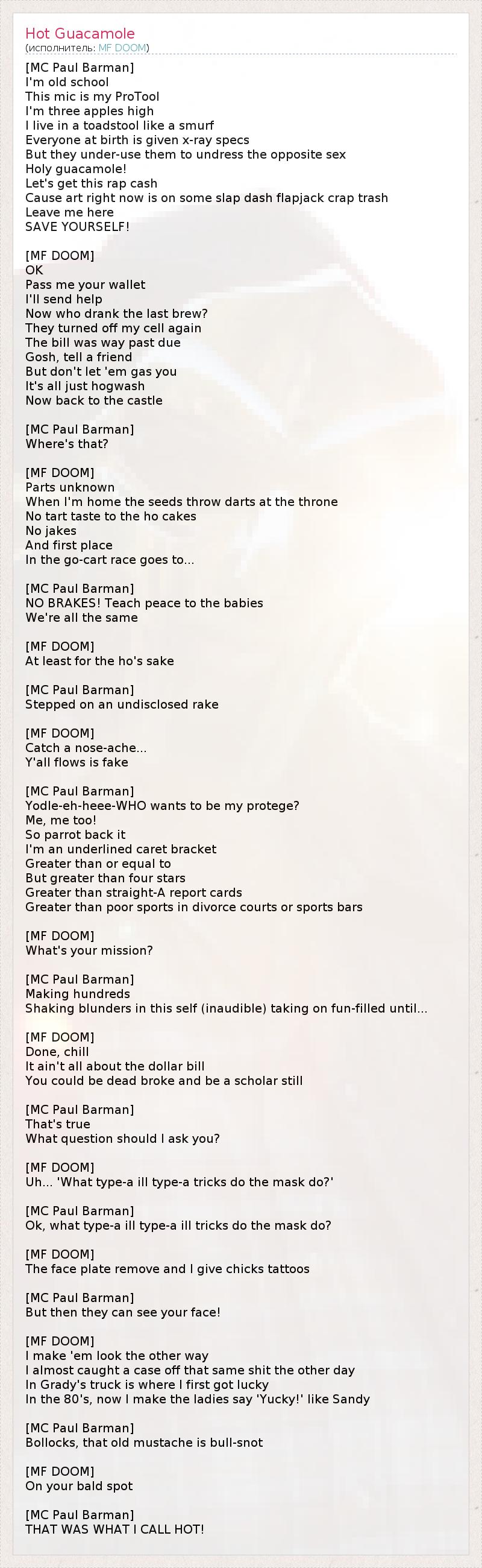 А как ты думаешь, о чем песня "Hot Guacamole" ?