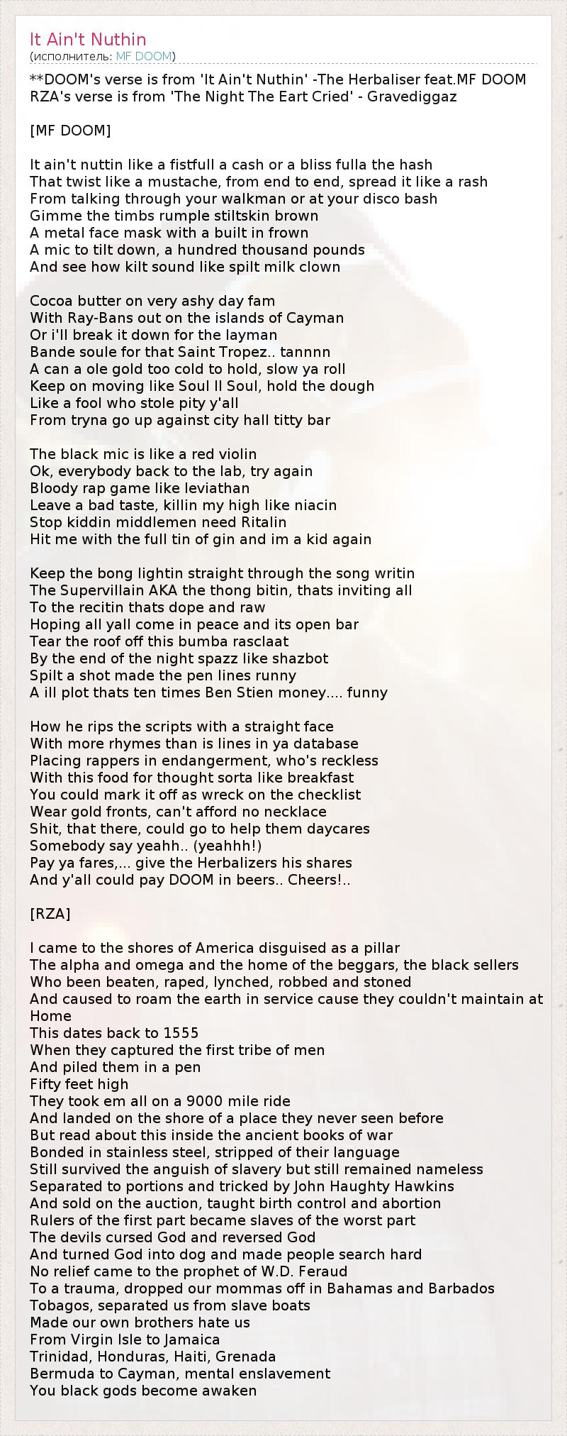 **DOOM's verse is from 'It Ain't Nuthin' -The Herbaliser feat.MF DOOM