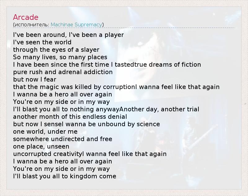 А как ты думаешь, о чем песня "Arcade" ?