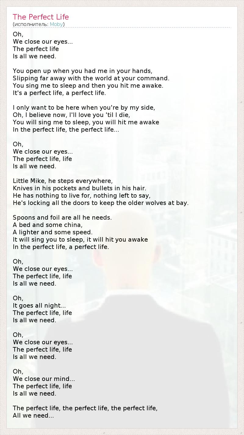 А как ты думаешь, о чем песня "The Perfect Life" ?