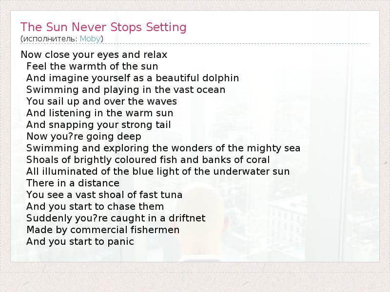 А как ты думаешь, о чем песня "The Sun Never Stops Setting" ?