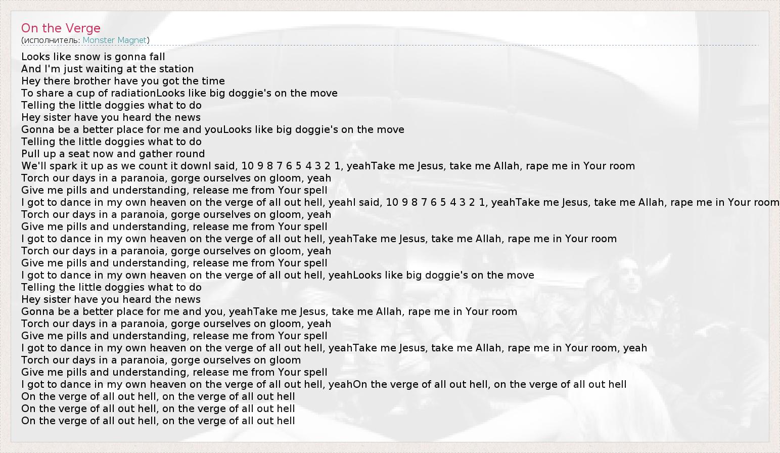 А как ты думаешь, о чем песня "On the Verge" ?