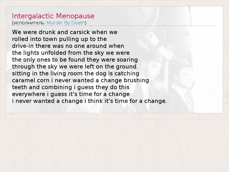 А как ты думаешь, о чем песня "Intergalactic Menopause" ?