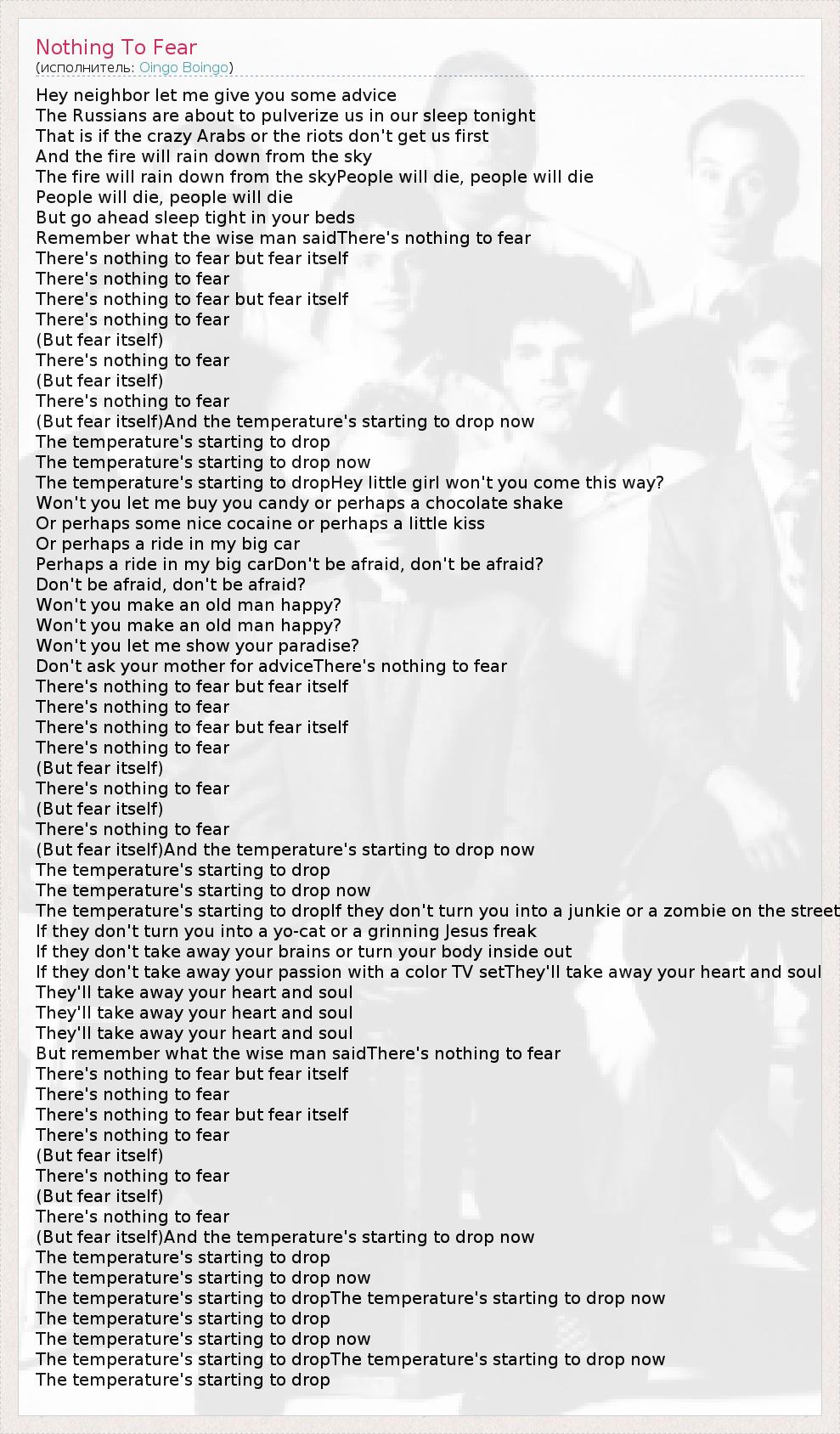 А как ты думаешь, о чем песня "Nothing To Fear" ?