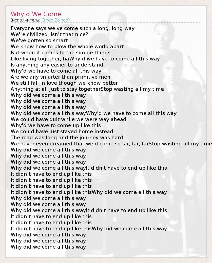 А как ты думаешь, о чем песня "Why'd We Come" ?
