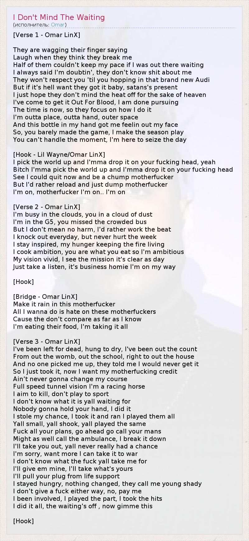 ГлавнаяИсполнителиOmarI Don't Mind The Waiting