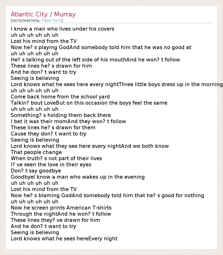 А как ты думаешь, о чем песня "Atlantic City / Murray" ?