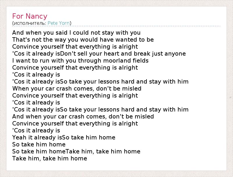 А как ты думаешь, о чем песня "For Nancy" ?