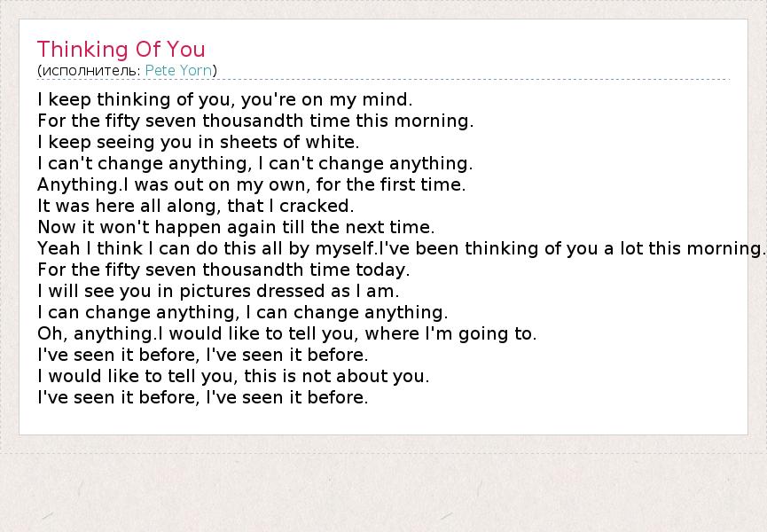 А как ты думаешь, о чем песня "Thinking Of You" ?