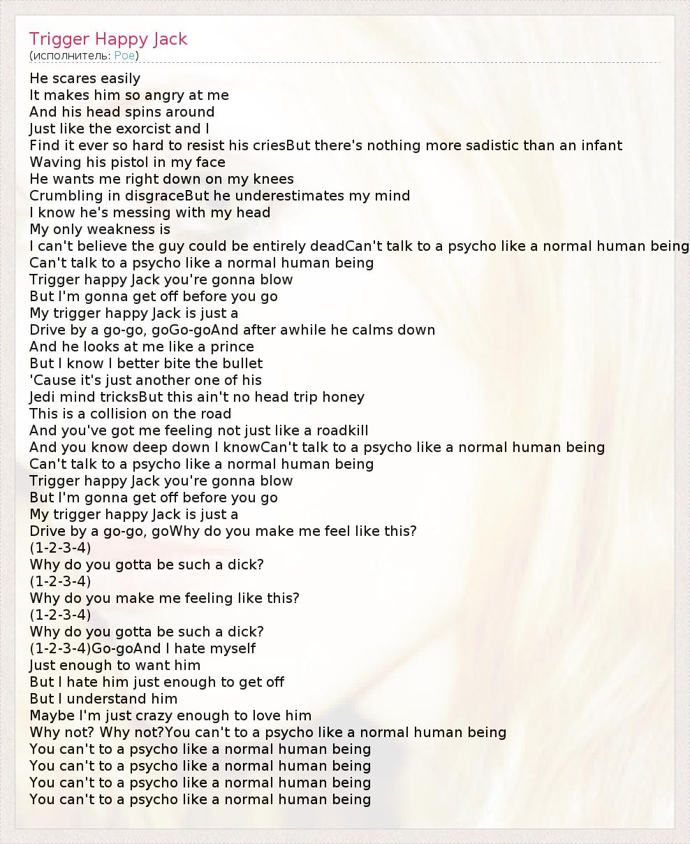 А как ты думаешь, о чем песня "Trigger Happy Jack" ?