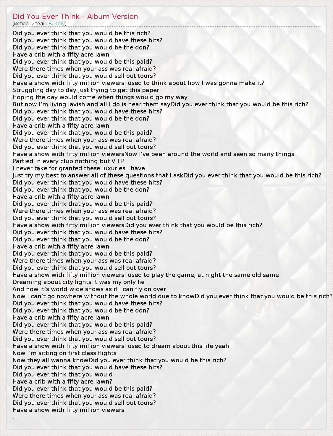 ГлавнаяИсполнителиR. KellyDid You Ever Think - Album Version